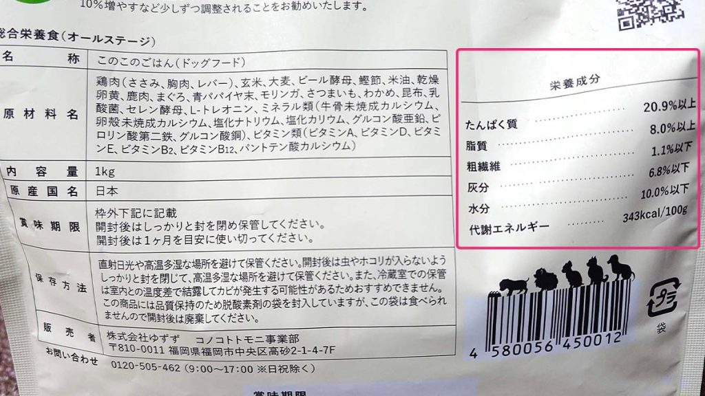 少なくとも、私がこれまで比較してきたフードの中では、このこのごはんを含む国産プレミアムフードのほうが脂質は控えめに感じました。(ちなみに、我が家で比較した「うまか」や「ミシュワン」も脂質9.5%程度でした)