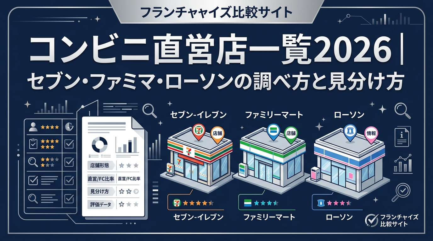 本記事では、2026年時点のコンビニ大手3社の直営店の調べ方・見分け方を解説するとともに、フランチャイズを検討している方にとって直営店がなぜ参考になるかをお伝えします。